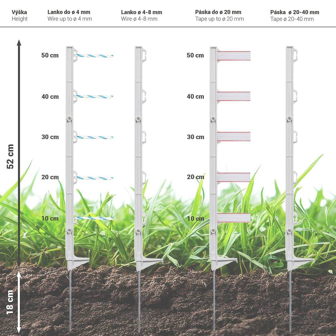 - celková výška sloupku 70 cm / nad zemí 52 cm