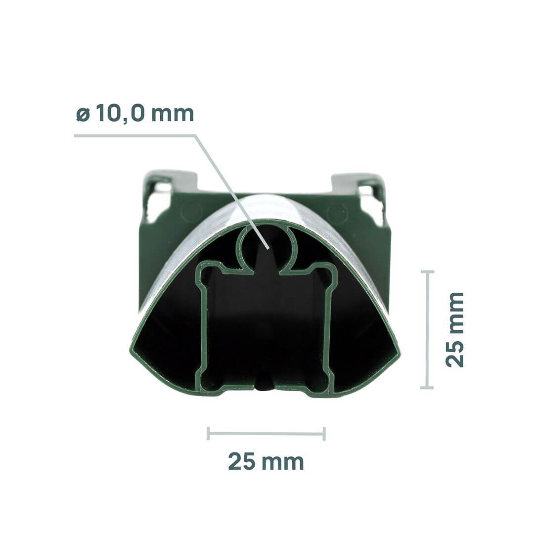 - Adaptéry s nosiči nasuňte na sklolaminátové sloupky a rozmístěte v rozestupech 5 nebo 10 metrů od sebe.