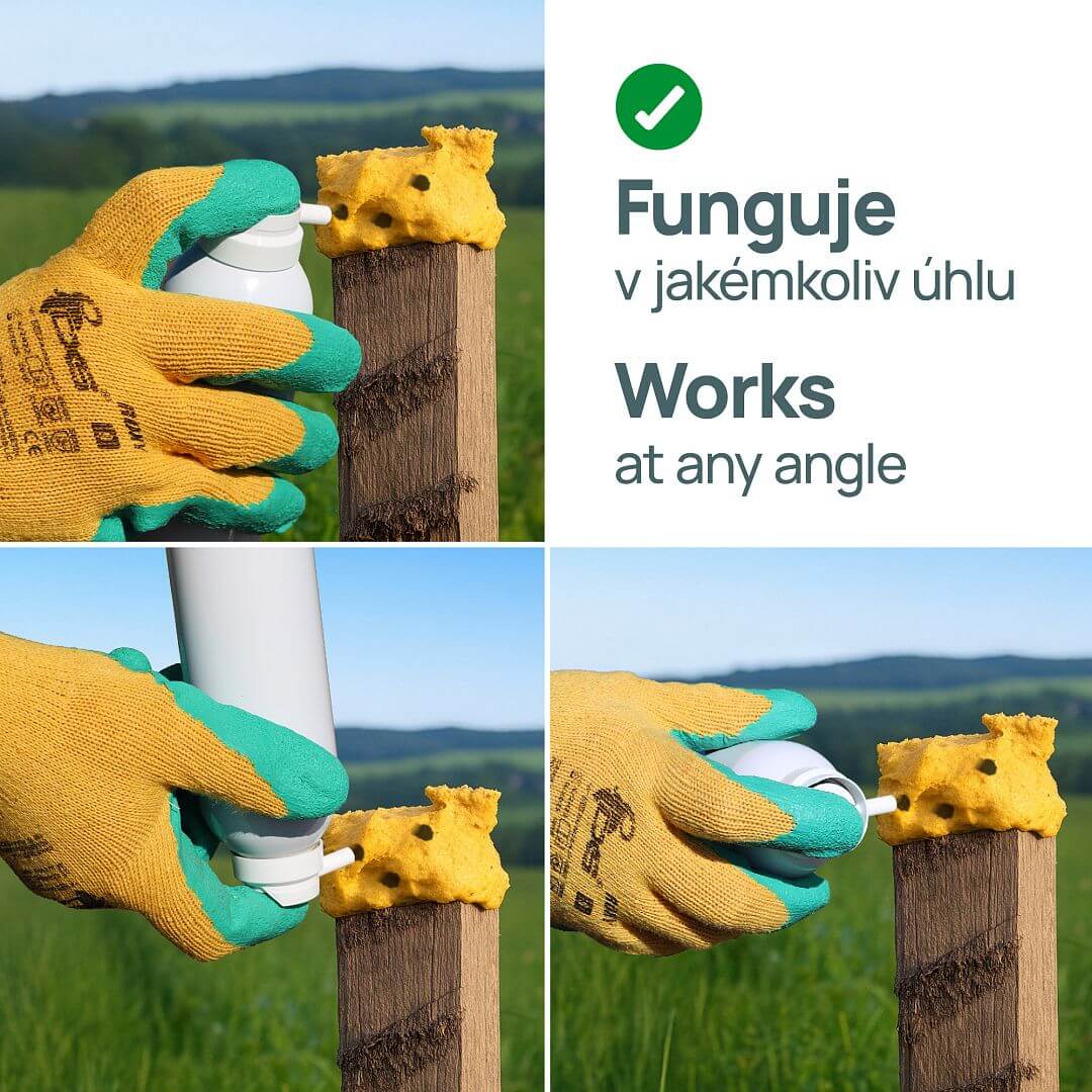 - Do otvorů vstříkněte koncentrát (aplikátor stiskněte na 1 vteřinu). K instalaci není potřeba aplikační pistole.
